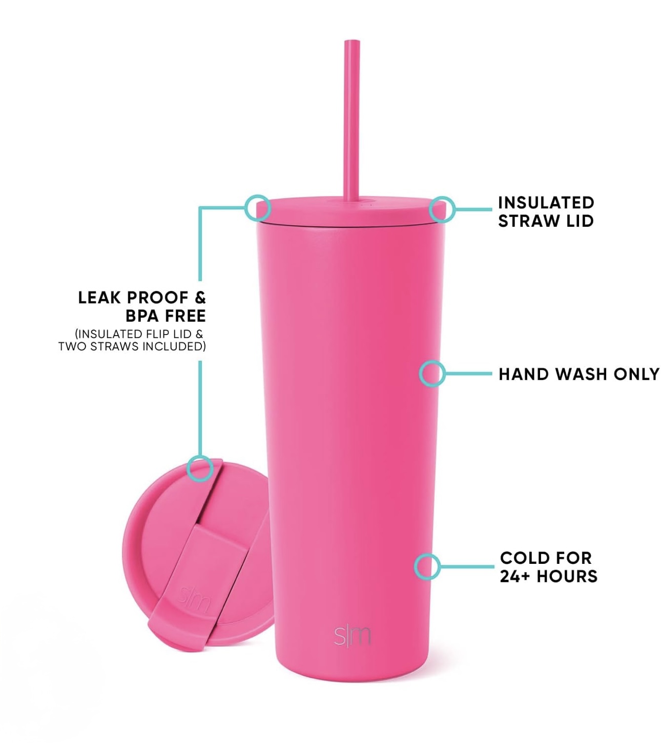 Lids: Includes straw lid and flip lid for versatile drinking options