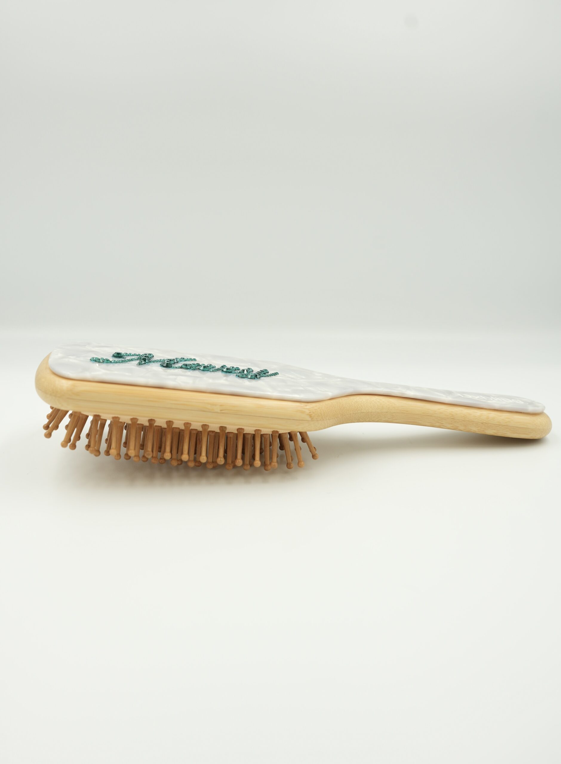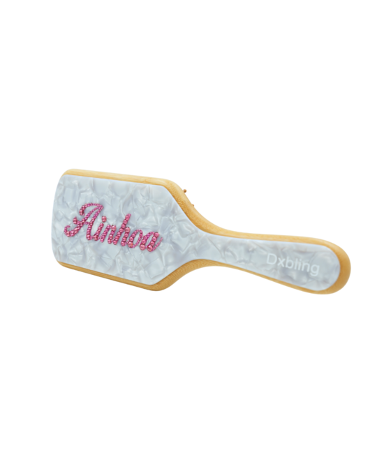Premium Hair Brush decorated on the back with an elegant and sophisticated layer made of cellulose acetate Adorned with hand-stoned original crystals 💎 personalized with your name. This exclusive design adds a touch of elegance to your daily styling.